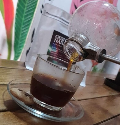 Vino de la cereza del café que nos transporta al momento del despulpado de la cereza y fermentado en mosto de uva isabella.